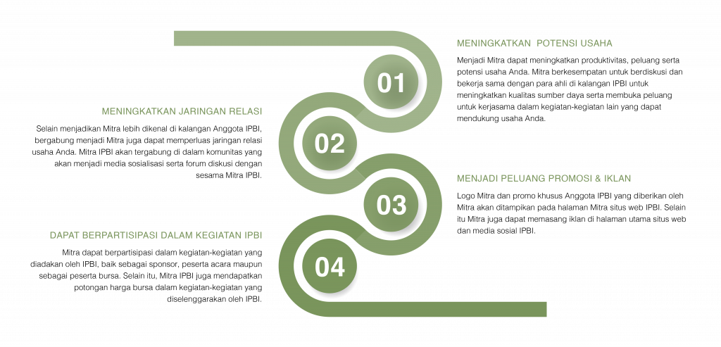 MITRA USAHA KEUNTUNGAN MENJADI MITRA CARA MENJADI MITRA Hanya dengan membayarkan Iuran Tahunan Mitra sebesar IDR 250.000 / tahun serta memberikan PROMO khusus Anggota IPBI dan atau mengambil PAKET IKLAN yang berlaku selama 1 (satu) tahun Anda dapat menjadi Mitra IPBI. DAFTAR PROPOSAL KEMITRAAN ALUR PENDAFTARAN MITRA